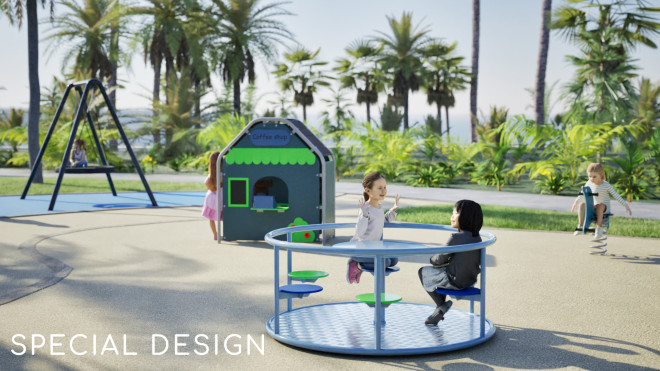 ผลิตจากเหล็กเคลือบผงสีที่ทนทานต่อสภาพอากาศและการใช้งานหนัก พร้อมด้วยส่วนประกอบ HDPE ที่แข็งแรงและปลอดภัย ช่วยให้ Carousel มีความทนทานและดูแลรักษาง่าย ตอบโจทย์การใช้งานในระยะยาว