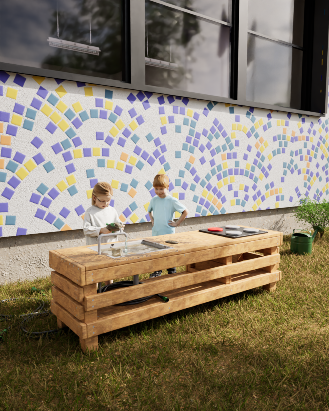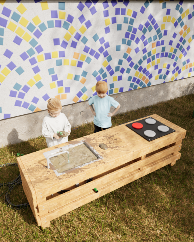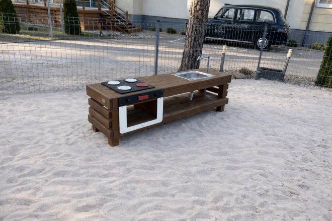 Kitchen Table เป็นองค์ประกอบที่ยอดเยี่ยมสำหรับสนามเด็กเล่นหรือพื้นที่กิจกรรมกลางแจ้ง ที่เน้นการส่งเสริมการเล่นแบบสร้างสรรค์และการเรียนรู้ผ่านการสัมผัสกับวัสดุธรรมชาติและอุปกรณ์เล่นที่ออกแบบอย่างพิถีพิถัน สร้างบรรยากาศที่เป็นมิตรและช่วยให้เด็ก ๆ ได้เพลิดเพลินกับการเล่นอย่างมีจินตนาการ
