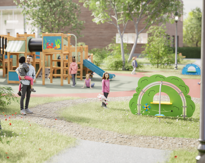 เหมาะสำหรับติดตั้งในสนามเด็กเล่น สวนสาธารณะ หรือพื้นที่พักผ่อนของโรงเรียน ช่วยกระตุ้นจินตนาการและส่งเสริมการเล่นแบบกลุ่มอย่างสร้างสรรค์ ด้วยดีไซน์ที่น่าสนใจและฟังก์ชันพินวีลที่เพิ่มความสนุกสนาน