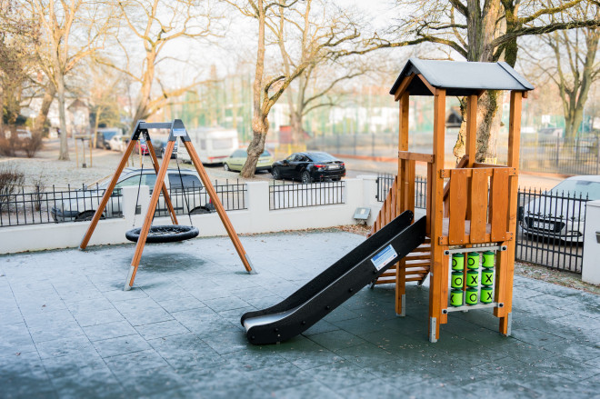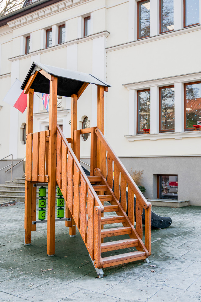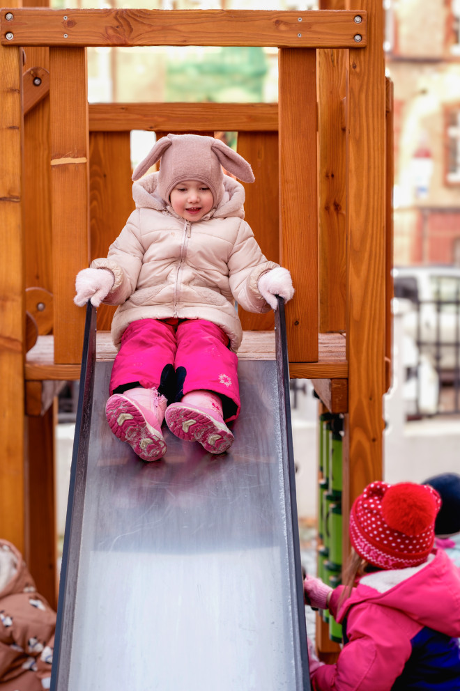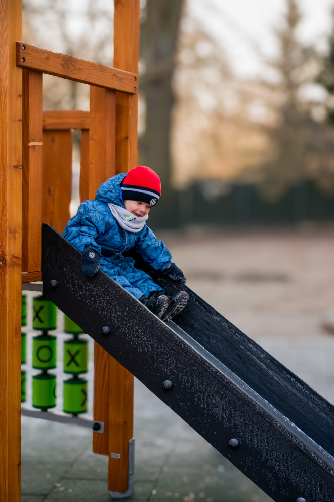ออกแบบโดยคำนึงถึงความสูงของแพลตฟอร์มและความสูงที่ปลอดภัยเมื่อตก โดยเหมาะสำหรับเด็กอายุ 3 ปีขึ้นไป พื้นผิวรอบๆ สนามเด็กเล่นจำเป็นต้องมีวัสดุป้องกันการกระแทกเพื่อความปลอดภัยสูงสุด
