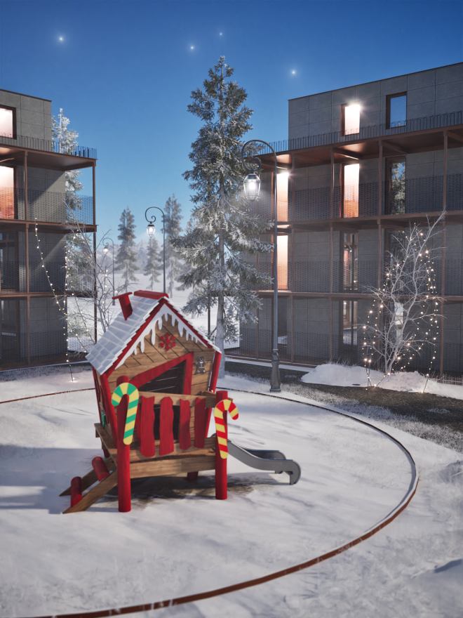 ออกแบบให้เหมาะกับเด็กตั้งแต่อายุ 1 ปีขึ้นไป ด้วยความสูงของแพลตฟอร์มที่ปลอดภัยและระดับความสูงของบ้านที่ไม่เกินมาตรฐานความปลอดภัย พร้อมพื้นที่รอบบ้านที่เพียงพอสำหรับการเคลื่อนไหวอย่างปลอดภัย พื้นผิวรอบบ้านเล่นต้องมีการจัดเตรียมเพื่อรองรับการตกและลดแรงกระแทกอย่างมีประสิทธิภาพ