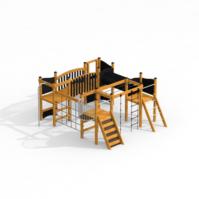 ผลิตจากไม้ลาร์ชคุณภาพสูงที่ทนทานต่อสภาพอากาศ ผสมผสานกับสเตนเลสสตีลและเหล็กชุบสังกะสีเพื่อความแข็งแรงและความทนทานสูงสุด เชือกเสริมแรง PP และเชือก PP อ่อนนุ่ม เพิ่มความปลอดภัยในการจับยึด แผ่นไม้อัดกันลื่นและกันน้ำช่วยให้พื้นผิวมั่นคงและปลอดภัย รวมทั้งใช้วัสดุรีไซเคิล HDPE และ PE ที่เป็นมิตรกับสิ่งแวดล้อม