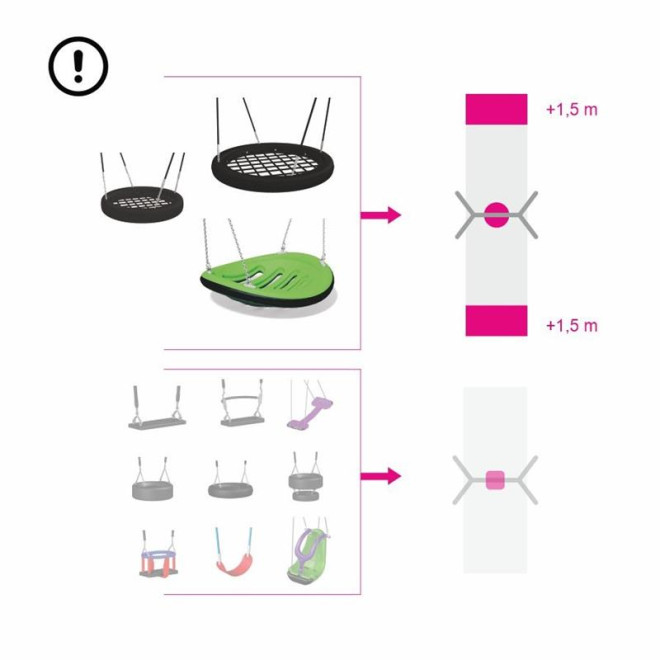 ออกแบบมาเพื่อตอบสนองความต้องการด้านความปลอดภัยโดยมีความสูงที่เหมาะสมและพื้นที่ปลอดภัยโดยรอบ ชิงช้านี้เหมาะสำหรับเด็กอายุ 2 ปีขึ้นไปและมีความสูงที่ให้ความรู้สึกปลอดภัยในทุกการเล่น พื้นผิวที่เหมาะสมสำหรับการติดตั้งช่วยลดความเสี่ยงจากการตกกระแทก