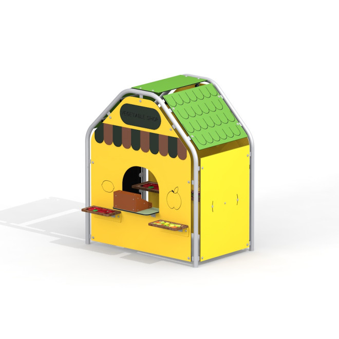 Vegetable shop เหมาะสำหรับติดตั้งในสนามเด็กเล่น สวนสาธารณะ หรือพื้นที่พักผ่อนหย่อนใจต่าง ๆ ที่ต้องการส่งเสริมการเล่นบทบาทสมมติและการปฏิสัมพันธ์ทางสังคมของเด็ก ช่วยกระตุ้นการเรียนรู้และพัฒนาทักษะการสื่อสารได้อย่างมีประสิทธิภาพ